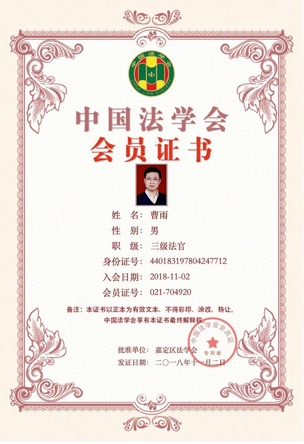 曹雨同志,1978年4月生,男,中共党员,华东政法大学法律硕士,上海政法学院特邀讲师,2009年4月~2019年5月间就职于某直辖市法院系统。曾审、执案件691件,并先后发表以下业务文章:
