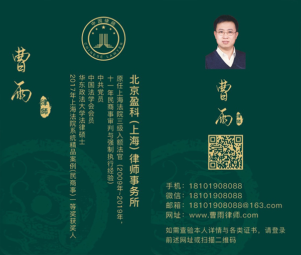 2019年5月,经某直辖市人大常委会与该市公务员局批准,曹雨同志辞去法院职务,现就职于北京盈科(上海)律师事务所。